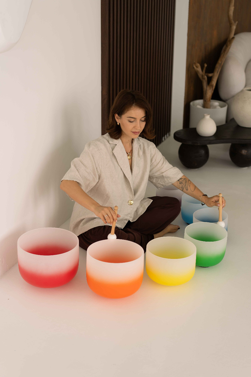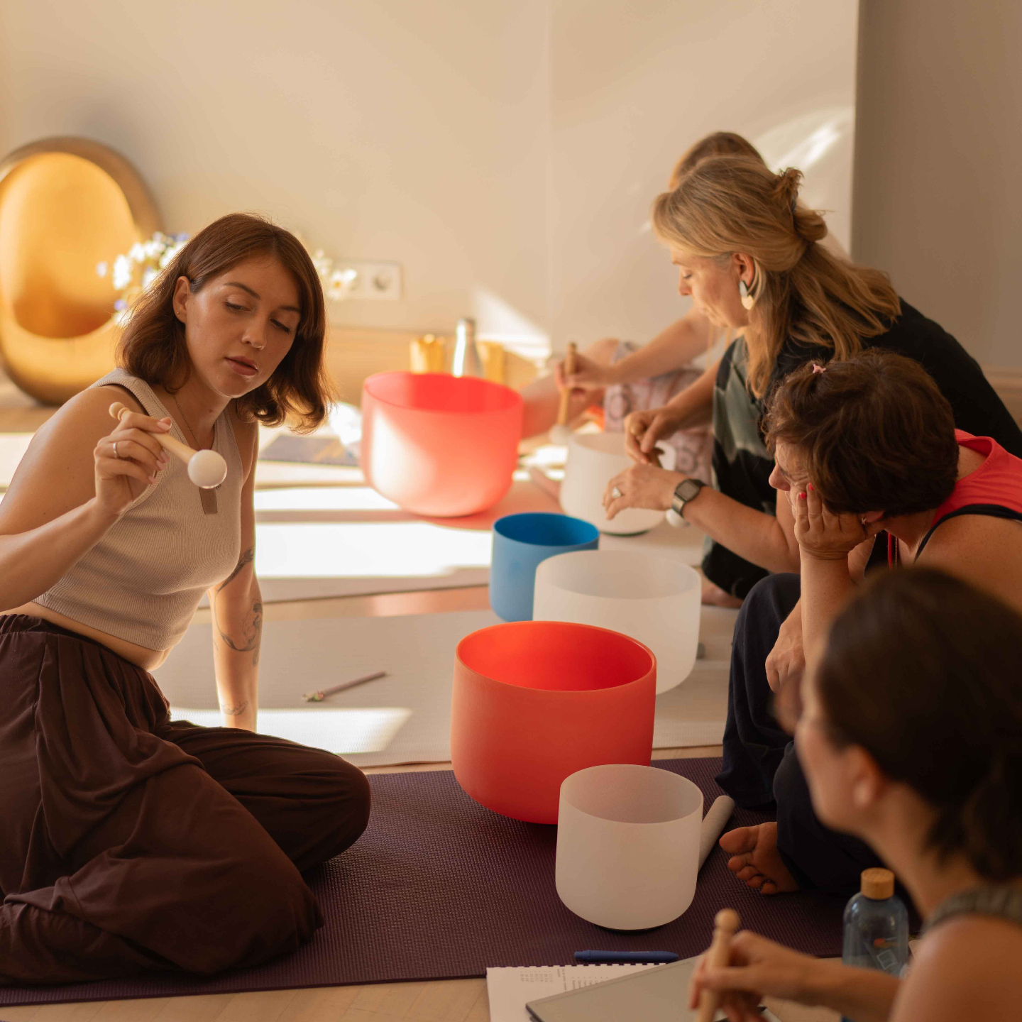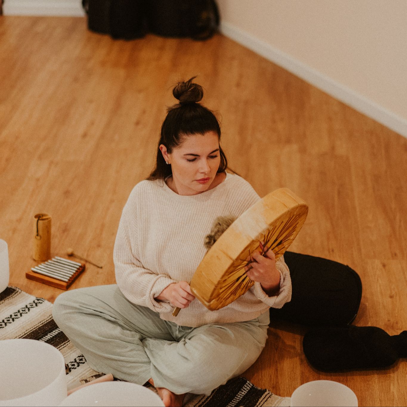 One of the core elements of the training is learning how to combine multiple instruments into a cohesive sound journey. You will develop the ability to structure a sound bath experience from grounding and settling the nervous system to deep meditative states and integration. This includes understanding pacing, layering sound frequencies, and creating immersive sonic environments.
